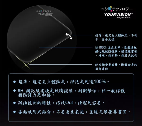 玻璃螢幕貼具有疏油高抗污、抗刮、耐衝擊特性