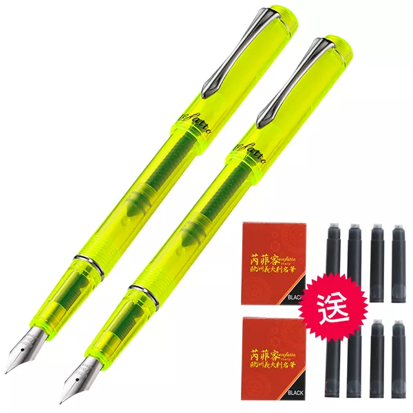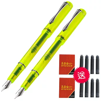 ?rarefatto芮菲客螢光黃透明鋼筆(德國白尖2入組)F尖 加贈2盒卡水